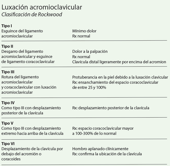 Las luxaciones se clasifican en parciales (subluxación) y completas. Según el agente productor o el mecanismo y su evolución, se les califica como: Traumáticas Las ocasionadas por un trauma directo o indirecto. Pueden ser cerradas, o abiertas cuando se pone en contacto el medio ambiente con las superficies articulares. Complicadas Cuando además de la pérdida de la relación articular existe lesión habitualmente vascular o nerviosa. Cuando se asocia a una fractura, recibe el nombre de fractura-luxación. Patológica Es aquella que se presenta sin trauma o con trauma mínimo en una articulación con patología previa, como puede ser infecciosa, tumoral o neuromuscular, entre las más frecuentes. Congénita Aquella que se presenta por un defecto anatómico existente desde el nacimiento. Ejemplo frecuente es la articulación coxofemoral. Recidivante o iterativa Es la que se presenta con mínimos traumas en forma repetitiva después de haber sufrido una luxación aguda en condiciones patológicas no traumáticas; cuando la reproduce el paciente por propio deseo, recibe el nombre de voluntaria.