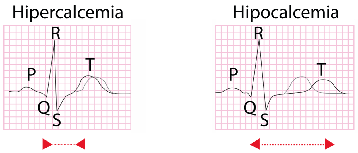 En hipercalcemia marcada, la onda T impresiona que nace justo del final del complejo QRS.