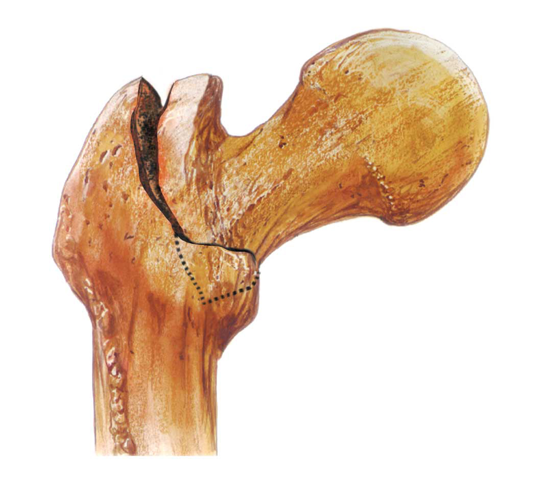 A2.3 Extendiéndose más de 1 cm por debajo del trocánter menor.